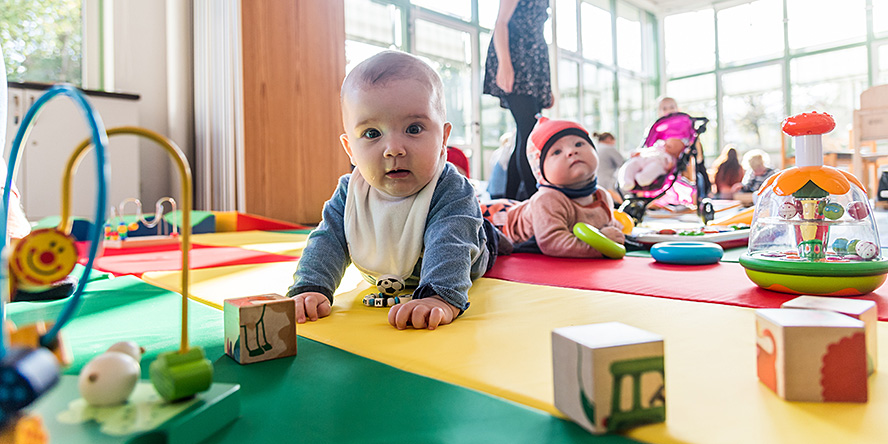 Babys und Kleinkinder können während dem Familientreff mit anderen Kindern spielen. Sie erfahren erste Regeln außerhalb der Familie, werden für den Kindergarten vorbereitet und erfreuen sich an vorhandenen Spielsachen.